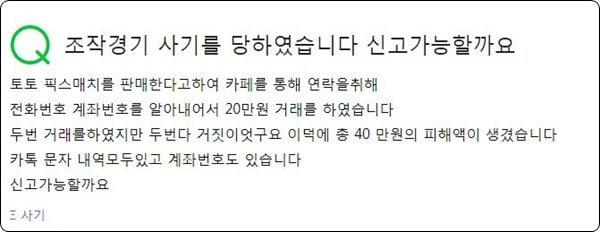 필자는 과거에 있던 K리그 조작 경기 등을 서칭하던 중 조작경기 사기를 당했다는 지식in 글을 발견하였습니다.